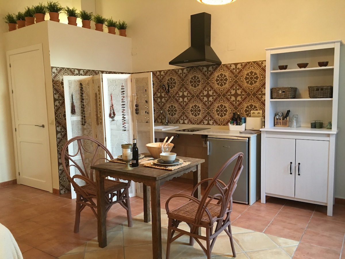 Frumos Rural-Loft în Parcul Natural Alcornocales (Tarifa) cu toate facilitățile și lemn Steve. Doar 15 minute (mașină) până la toate plajele fabuloase din Tarifa, Bolonia. De asemenea, ideal pentru trasee de biciclete sau zonă de drumeții. Un loc foarte liniștit pentru a vă relaxa și a vă bucura de natură. Loft distribuit într-un singur spațiu cu living - bucătărie, pat-mezanin foarte spațios și (canapea extensibilă), baie și o terasă înconjurată de o grădină plină de copaci, Barbaque... Loft-ul este atașat la casa noastră (dar complet independent).