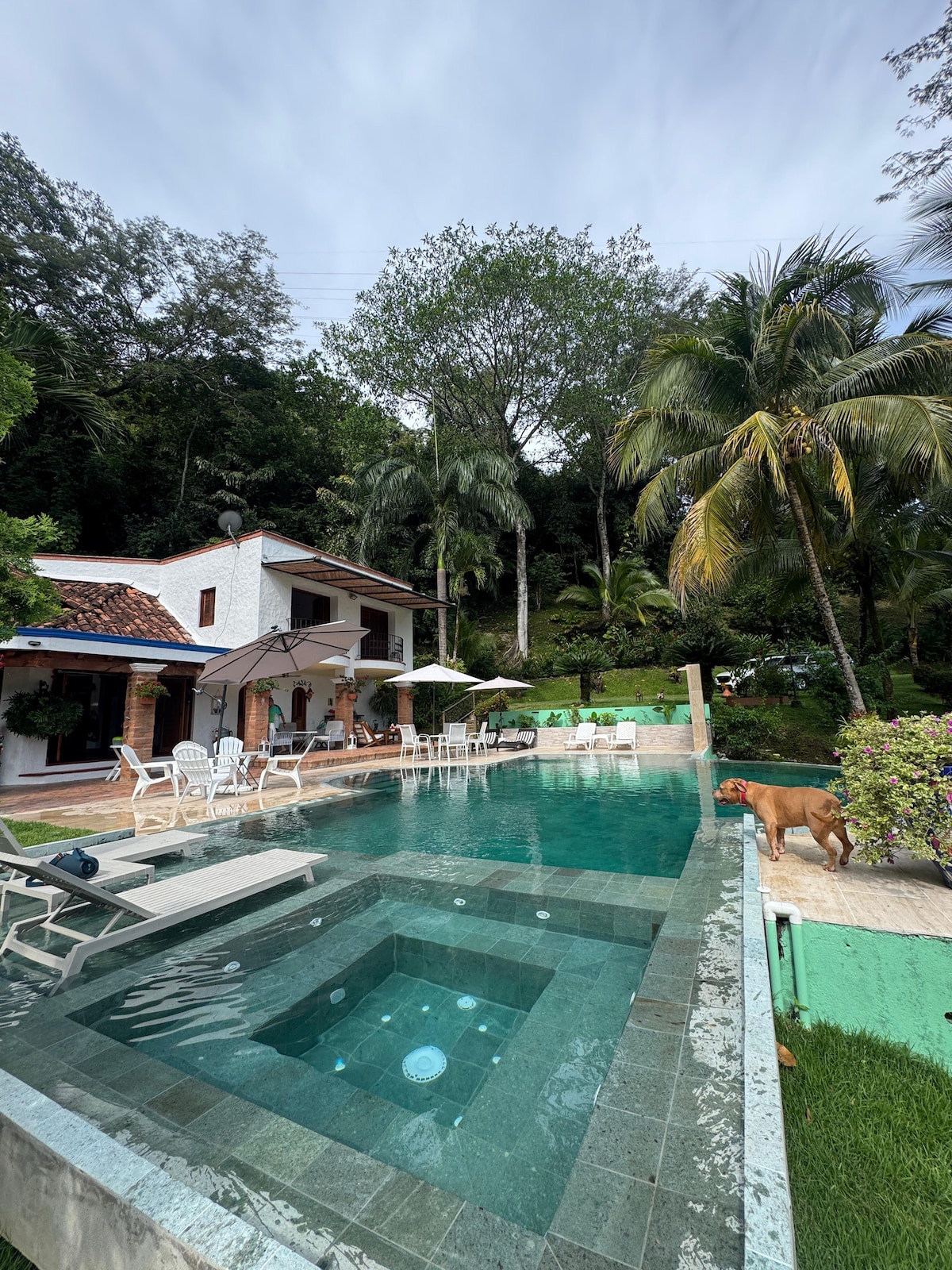 Relaxează-te cu întreaga familie în acest loc liniștit, sigur și foarte frumos. 3 minute de BOLOMBOLO 1:20 minute până la Medellin Casă foarte spațioasă, cu camere și băi bune, cu pădure proprie, păsări, grădini frumoase, piscină, chioșc, apă caldă, foarte curată. Servicii excelente. Are o taxă pe noapte și o persoană suplimentară pentru 14 oaspeți, cu o capacitate maximă de 20 de persoane. Angajatul costă pe zi 80.000 $.