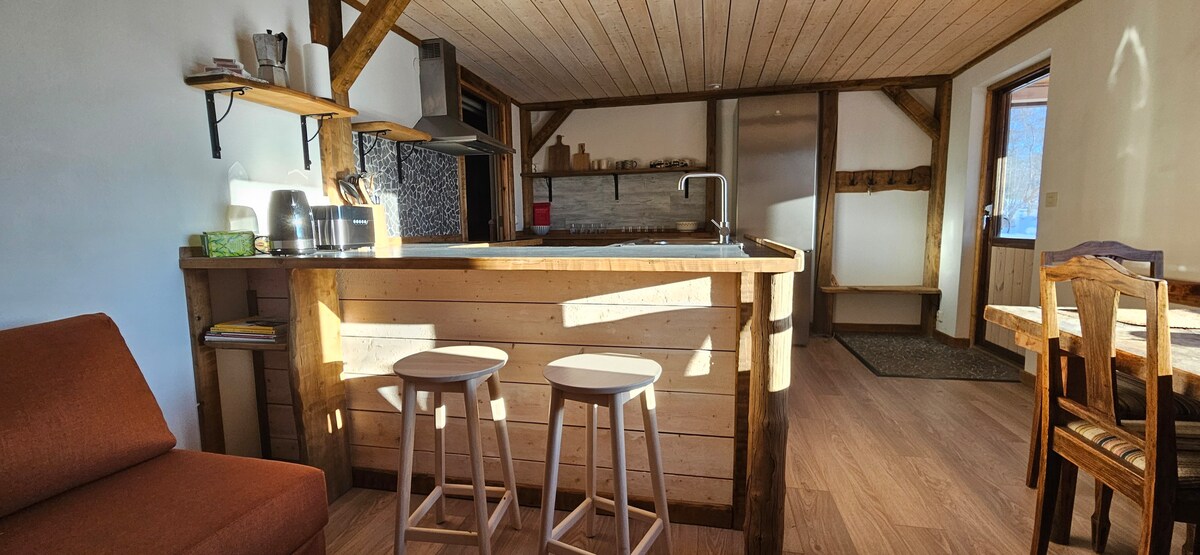 Cabană din bușteni fermecătoare, cu priveliști frumoase