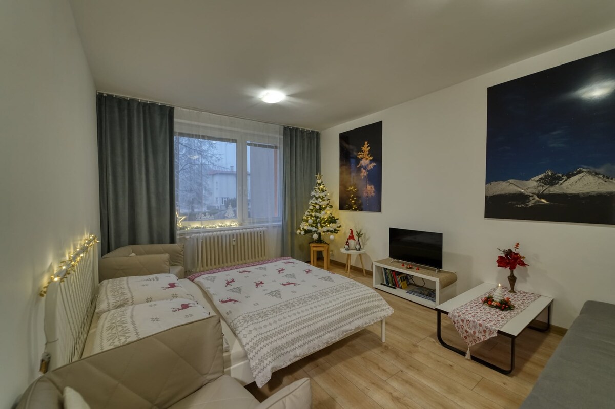 Ofer un apartament modern, confortabil, cu vedere uimitoare la High Tatras. Există 7 locuri de dormit (două dintre ele seamănă mai mult cu locuri de dormit de rezervă), pentru confortul ideal recomand 4-5 persoane. Lângă apartament poți vizita restaurantul tradițional slovac (Koliba-Tatry) cu o varietate foarte gustoasă de mâncare la prețuri bune. Apartamentul include: - parcare proprie - pivniță pentru depozitarea schiurilor,snowboard-urilor sau bicicletelor