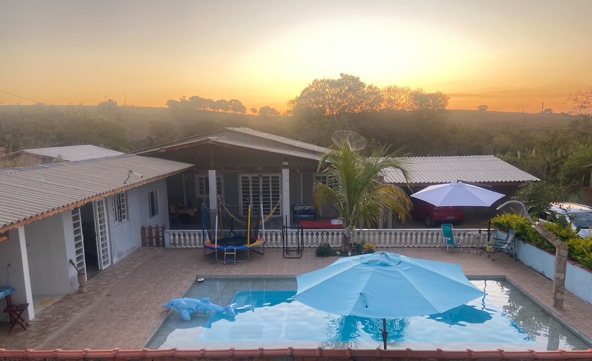 Această locuință elegantă este perfectă pentru călătoriile de grup. Este în interiorul unui condominiu unde există o mai mare securitate și nicio problemă de zgomot. Există 1.000 de metri unde alcătuiești spațiul: * SWISS CHALE, cu 1 dormitor, living, bucătărie și baie. * CAMERĂ MULTIFUNCȚIONALĂ CU 100 de metri. * 4 DORMITOARE FIECARE CU 1 PAT DUBLU ȘI 1 PAT SUPRAETAJAT. * PISCINĂ MARE MEDI DE 12X4 METRI * GRĂTAR * PLITĂ CU LEMNE * CUPTOR DE PIZZA * SPAȚIU FOQUEIRA * 2 BĂI ÎN AER LIBER * TEREN DE FOTBAL * LOCURI DE DORMIT PENTRU 20 DE PERSOANE.