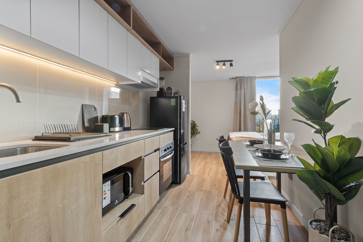 Lasă-te captivat de un spațiu în care fiecare element a fost ales cu atenție. Cu un decor care îmbină modernul cu natura. Ți oferim o vedere clară, lumină naturală și o atmosferă caldă pentru a-ți face experiența perfectă. Echipat cu SmartTV, WiFi de mare viteză, pat dublu, bucătărie funcțională și detalii de care te îndrăgostești. La câțiva pași de metrou, cu acces la cele mai bune sectoare din Santiago. Dacă ai nevoie de parcare, putem închiria 1 loc în interiorul condominiului.