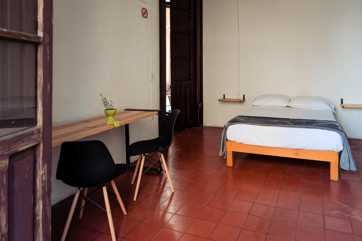 MORADA LIVING Perfect pentru prieteni, colegi sau călători care preferă să doarmă separat, acest studio oferă două paturi de o persoană, o canapea extensibilă, o bucătărie completă, un televizor inteligent și un birou. Designul său modern îl face practic și confortabil pentru șederi scurte sau lungi. Clădirea are zone comune plăcute și se află într-o locație strategică: în apropiere de Centrul Istoric, Colonia Americana și Parque Agua Azul. Confort, flexibilitate și locație într-un singur loc.