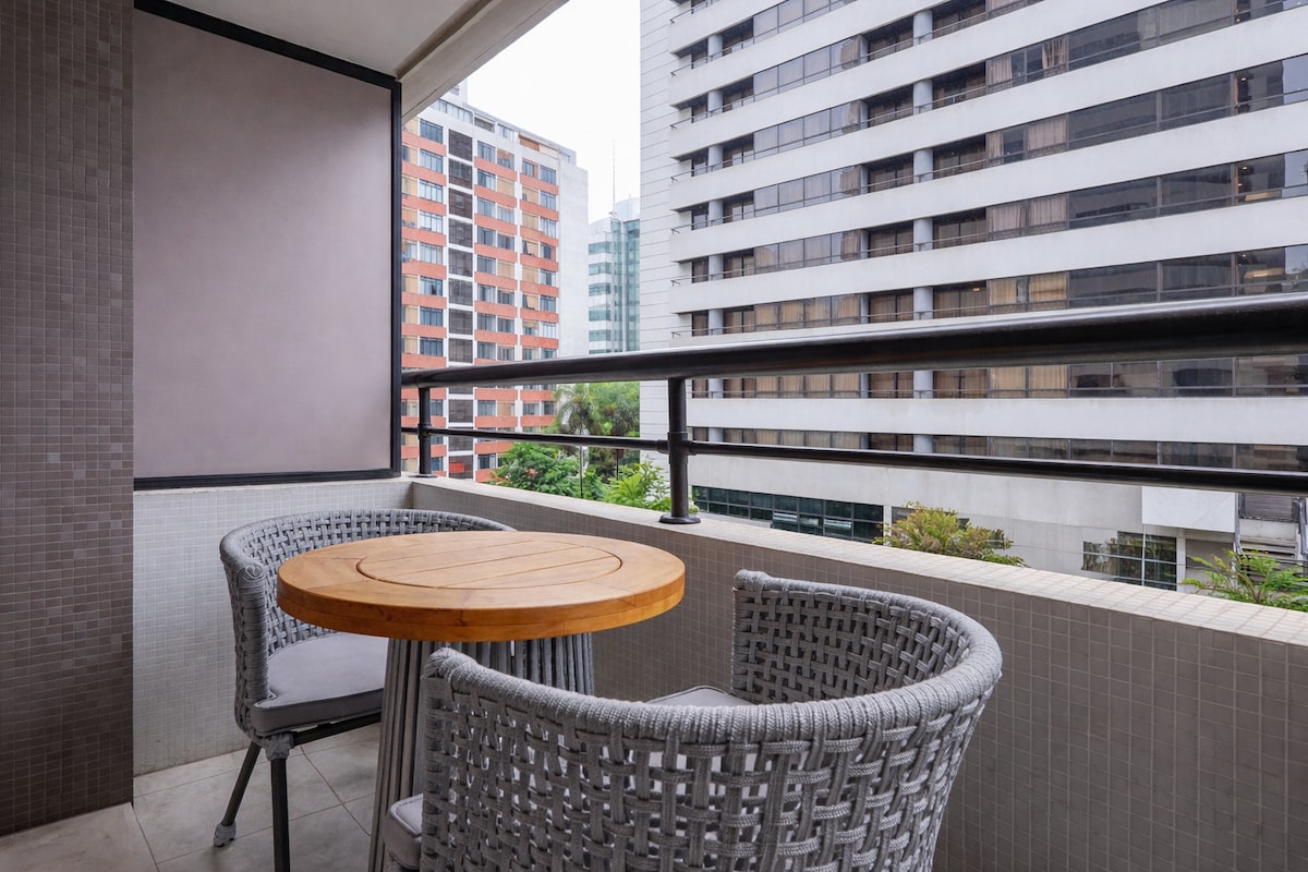 Experiențe delicioase: cadă, fluxuri TV de 50 inch (100 de canale), produse L’Occitane, birou, brunch exclusiv pentru șederi de peste 15 nopți. Cartierul este Jardins, care oferă cele mai bune preparate gastronomice, de agrement și de cultură. Apartamentul se află într-un hotel elegant de cinci stele, cu piscină și fitness pentru a te bucura de el. Lângă acesta, restaurantul Président al prestigiosului chef Érick Jacquin și celebra stradă Oscar Freire. Următorul Av. Paulista și stația de metrou.