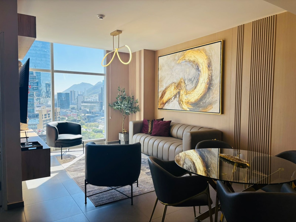 Experience the essence of Monterrey at our exquisite apartment, perfectly situated in the city's lively core. This modern haven combines comfort and sophistication, making it an ideal for both leisure and business travelers alike. Our thoughtfully designed space promotes relaxation ensuring a seamless stay. Enjoy easy access to Monterrey’s top attractions and entertainment. Whether you're exploring the city's culture or resting after a busy day, our apartment is your perfect home away.
