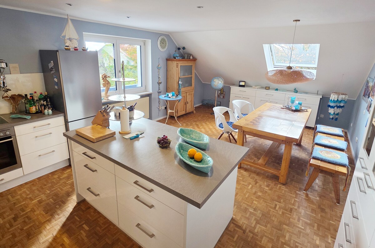 Studioul nostru de la mansardă de pe traseul de ciclism al Dunării cu vedere la Walhalla a fost construit în 2023. Aceasta este situată într-una dintre primele clădiri sustenabile din Regensburg, în municipalitatea Tegernheim. Regensburg cu centrul său medieval este la 7 km și se poate ajunge cu autobuzul, mașina sau bicicleta. Acolo vei găsi o abundență de artă, cultură și delicii culinare. În studioul de la mansardă în stil loft, te poți relaxa apoi pe balcon în zona de luat masa confortabilă și poți planifica a doua zi pe vreme bună.