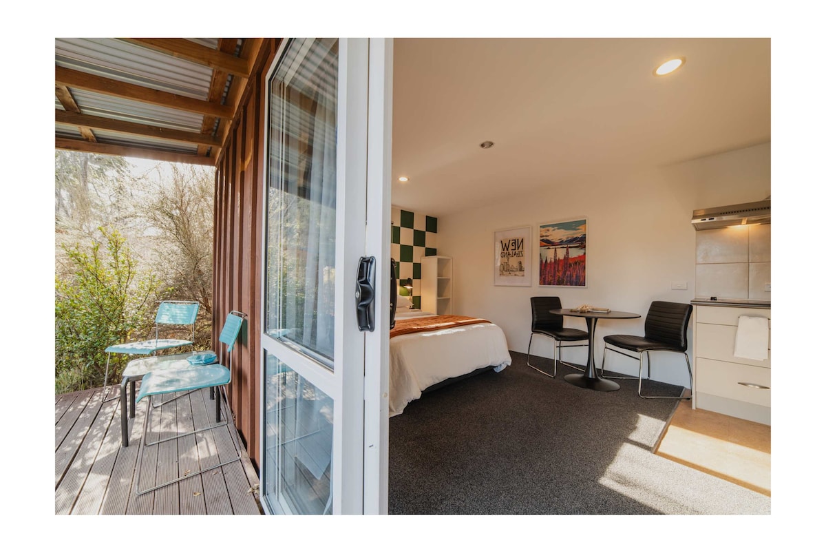 Bine ai venit la noul nostru „Clever Cube”. Când nu găzduim oaspeți, Clever Cube este un showroom pentru tehnologia pe care am folosit-o. Poate fi inteligent, dar este, de asemenea, confortabil și privat, cu o vedere incredibilă la munte. „Clever Cube” este o unitate de studio de lux cu facilități pentru prepararea ceaiului și cafelei. Acesta este locul perfect pentru a te reîncărca după o zi aglomerată în Mackenzie. În prezent, desfășurăm o experiență specială, deoarece nu am putut finaliza amenajarea peisagistică, te rugăm să verifici fotografiile.