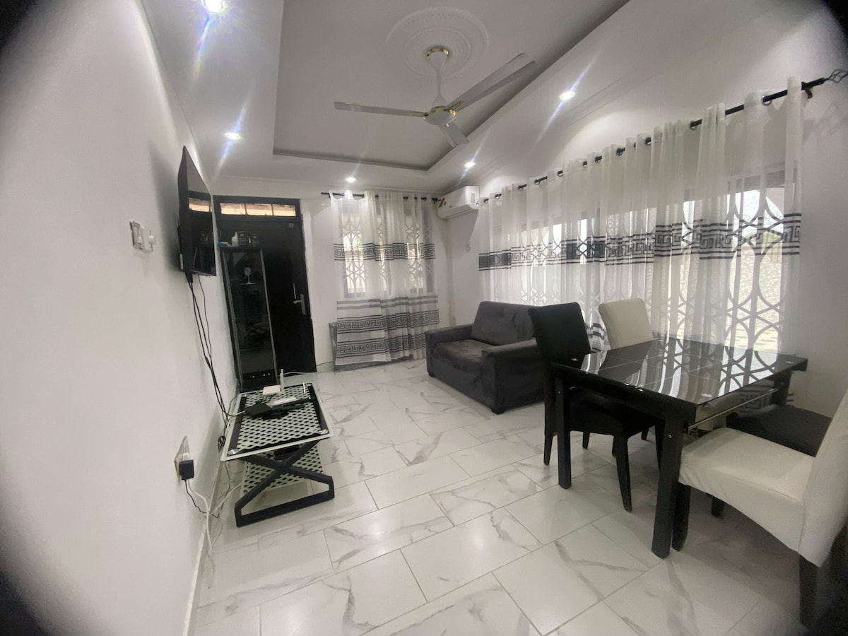 Bine ai venit la escapada ta spațioasă din Klagon, Tema! Acest apartament modern cu un dormitor oferă confort și comoditate, la doar câteva minute de plaje liniștite și atracții de top. Complet echipat cu bucătărie, mașină de spălat rufe, Wi-Fi și aer condiționat, este perfect pentru șederi de scurtă sau lungă durată. În apropiere, explorează Junction Mall, Tema Golf Club și viața de noapte vibrantă. La numai 25 de minute de aeroportul internațional Kotoka, cu acces ușor prin Bolt, Uber sau taxiuri. Rezervă acum pentru o escapadă relaxantă!