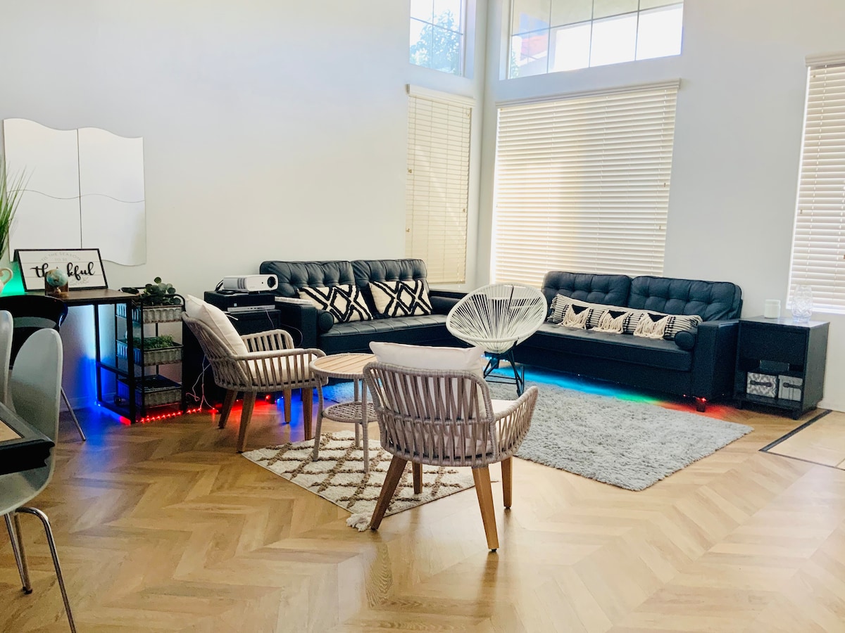 Bine ai venit în propria ta oază privată cu priveliști uimitoare în acest refugiu spațios și liniștit, bucură-te de vatra de foc și cada cu hidromasaj, fotoliul de masaj și camera de jocuri Cadă cu hidromasaj pentru ☞ 6 persoane ☞ Masă de biliard ☞ Pat matrimonial „King” cu baie proprie Curte ☞ împrejmuită ☞ Parcare (la fața locului, 7 mașini) Wi-Fi ☞ gratuit de 1 Gbps ✭Adaugă anunțul meu la lista ta de dorințe dând clic ❤️pe colțul de sus ☞ 5 Smart TV-uri (cel mai mare este de 65 inch) ☞ Acceptarea animalelor de companie ☞ Bucătărie în aer liber cu grătar cu gaz ☞ Check-in independent Mașină ☞ de spălat + uscător automat de rufe la proprietate ☞ Bucătărie complet utilată + aprovizionată