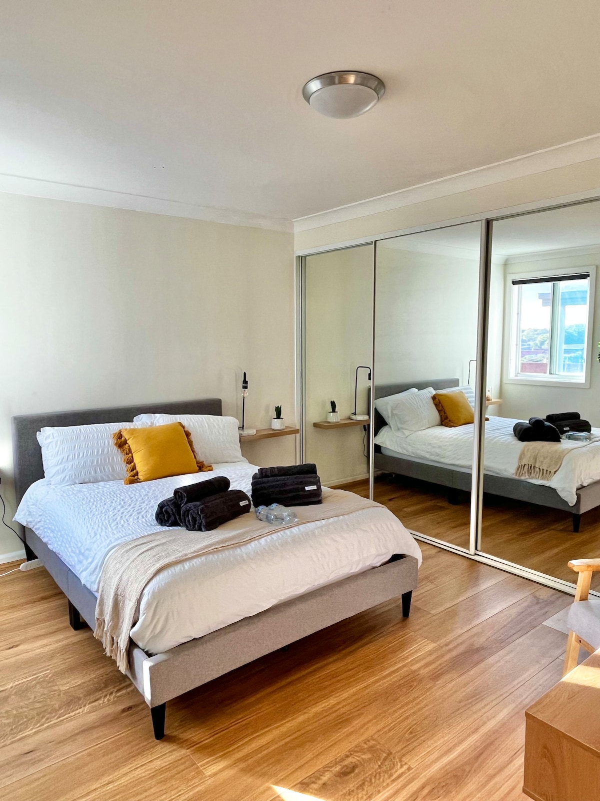 Bine ai venit la reședința noastră din Wolli Creek! Acest fermecător apartament cu 1 pat, 1 baie și 1 mașină este situat ideal, cu gară, magazine și restaurante chiar la ușa ta, perfect pentru o masă rapidă sau o băutură. Bucură-te și de piscina noastră și de sala de fitness! Locuri-cheie: - Gara Wolli Creek: 1 minut de mers pe jos, 50 de metri - Aeroportul Sydney: 2-5 min cu trenul, 5-10 min cu mașina - Sydney CBD: 15-20 min cu trenul, 20-30 min cu mașina - Opera: 20-25 min cu trenul - Bondi Beach: 30-40 de minute cu trenul și autobuzul