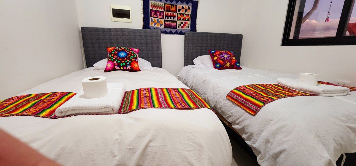 Trezește-te cu priveliști panoramice asupra orașului Cusco scăldat în lumina dimineții. Acest duplex luminos, cu design avangardist, îmbină căldura naturală cu confortul modern, unde ferestrele mari și spațiile deschise încadrează orizontul orașului. Construită pe un teren sacru incaș, unde a locuit cândva dinastia Inca Manco Cápac, se află la doar 10 minute de mers pe jos de Sacsayhuamán și Plaza de Plaza de Armas, aproape de pulsul orașului, dar perfect liniștită pentru dimineți lente și apusuri de soare aurii. Reciclăm și compostăm, onorând spiritul acestui loc.