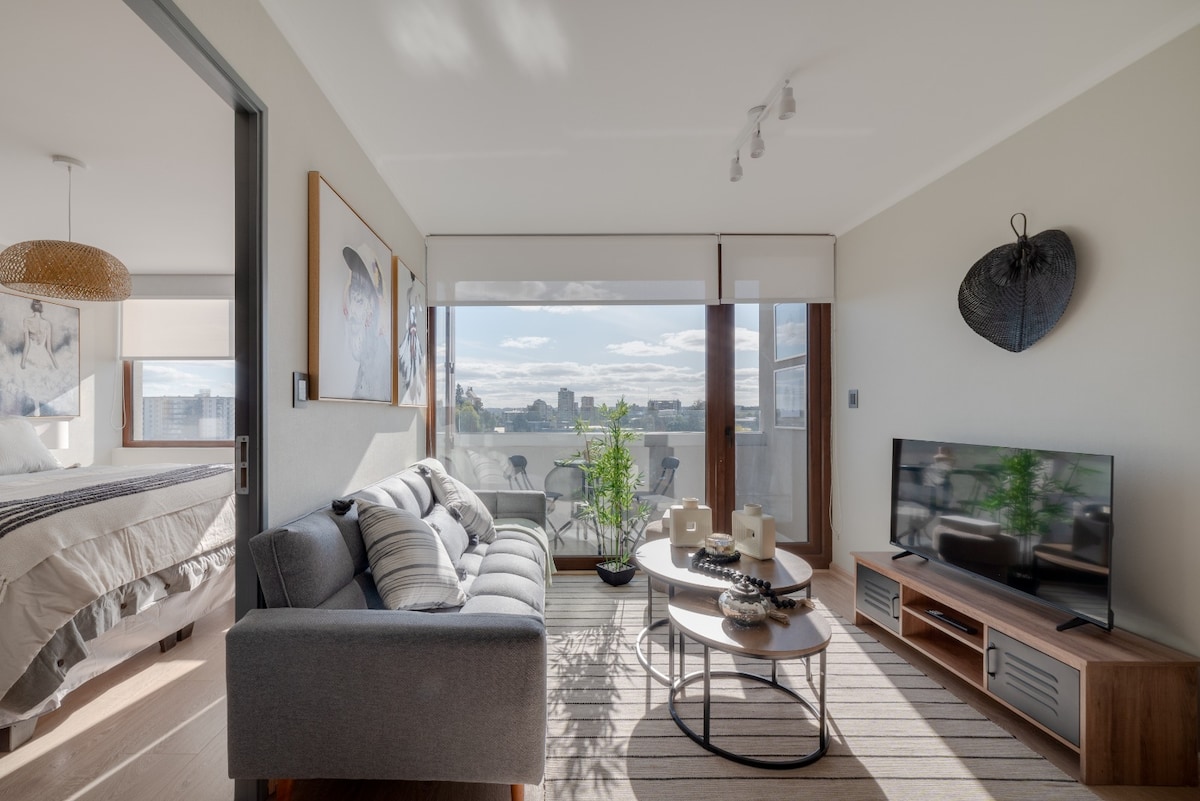 Bucură-te de simplitatea acestei cazări liniștite și situate central. Bucură-te de o ședere elegantă și calmă în acest apartament tip boutique de lângă Av. Alemania. Designul său combină tonuri neutre și detalii confortabile care te invită să te odihnești. Are Wi-Fi rapid, Smart TV, bucătărie utilată și pat confortabil. Ideal pentru călătorii de afaceri, sănătate sau escapade. Înconjurat de cafenele, restaurante și servicii, oferă o experiență modernă și relaxantă în inima orașului Temuco.