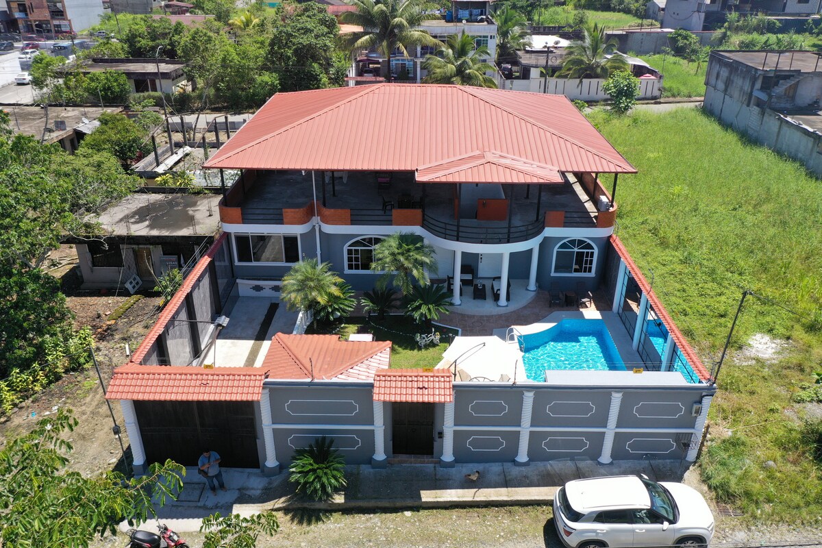 Relájate en este tranquilo lugar para quedarse. En la ciudad, en una zona rodeada de naturaleza, con piscina y área BBQ exclusiva para la casa las 24 horas, con parqueadero y cerramiento con cerco eléctrico. Totalmente equipada con menaje de cocina y parrilla A 3 del hospital de Tena, a 3 minutos del comando policial y 5 minutos del malecón de Tena