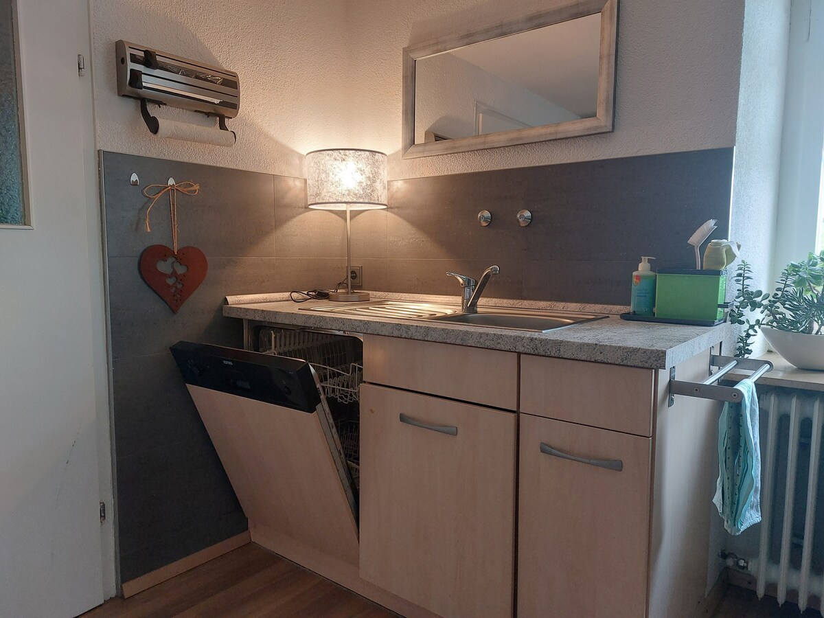 Relaxează-te și simte-te ca acasă în acest apartament liniștit și confortabil. Datorită poziției sale centrale, Elveția, Pădurea Neagră și Lacul Constance sunt la îndemână. După o călătorie, poți petrece seara în grădină într-un mod relaxat și confortabil și poți găti ceva delicios. Dacă vii cu bicicleta, o poți depozita la noi. Parcarea este disponibilă chiar în fața casei.