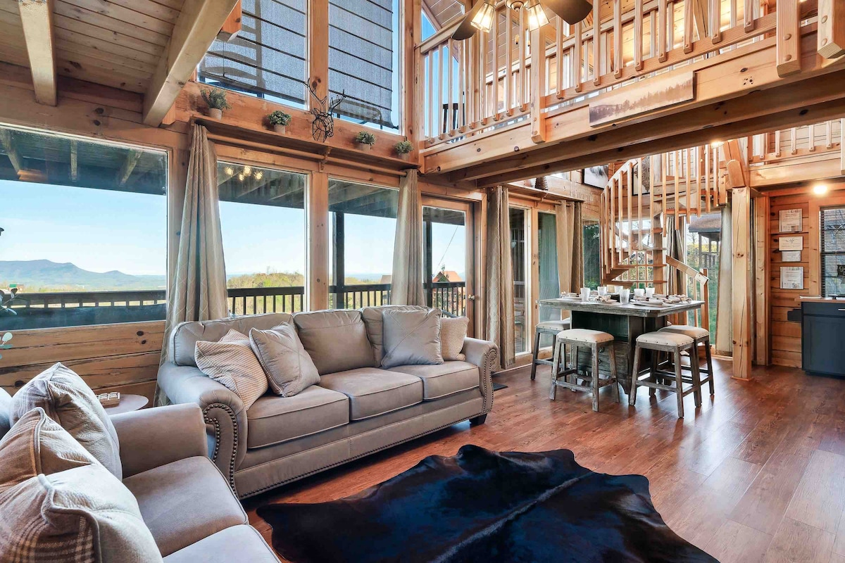 **FĂRĂ TAXE AIRBNB ** Vederi pentru Daze - Cel mai bun din ambele lumi - Bucură-te de priveliști superbe ale Munților Smoky din această cabană liniștită și fermecătoare, care este, de asemenea, situată central la toate atracțiile pe care le poți explora în timpul vacanței. La câteva minute de Dollywood și aproximativ 15 minute până în centrul orașului Pigeon Forge. După o zi întreagă de explorare, întoarce-te în cabană pentru priveliști imaculate ale apusului de soare de pe oricare dintre cele două punți!