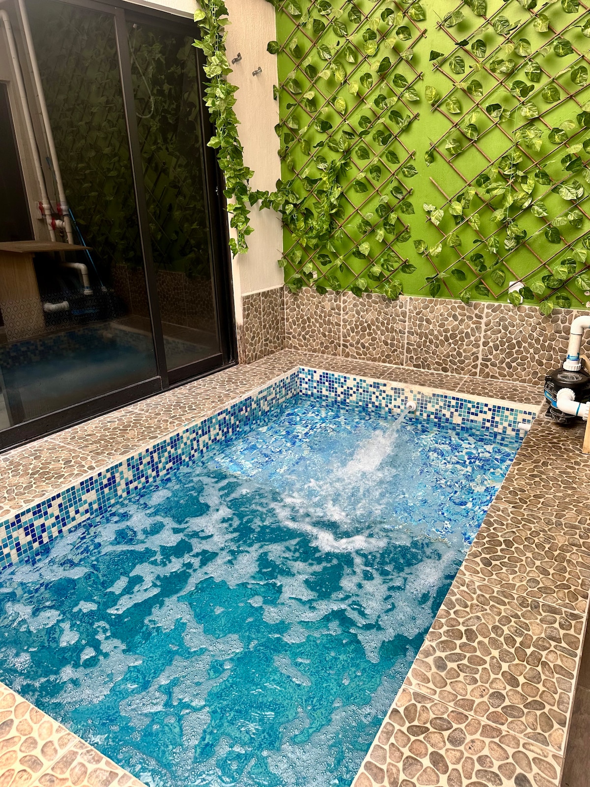 RESERVA CON NOSOTROS Hola! Somos Carlos, Liz y Jenny. Hasta 16 pps. Pregúntanos! 🤗 Estamos ubicados en centro de Tequila (SUPER UBICACIÓN) & a 15 minutos de CANTAROS EL GÜERO. Las habitaciones tienen AIRE ACOND ● 📣 ⚠️ 👉🏻Esta es nuestra tarifa base 6 pps, pero caben hasta 16 personas. Pregúntanos. 👇🏻Lee ALOJAMIENTO y OTROS ASPECTOS DESTACABLES 💡 📣💕 La alberca, opcional puedes solicitar calefacción ambiental (28-31 grados) (considera el temporal lluvia-frio) con costo extra simbólico.