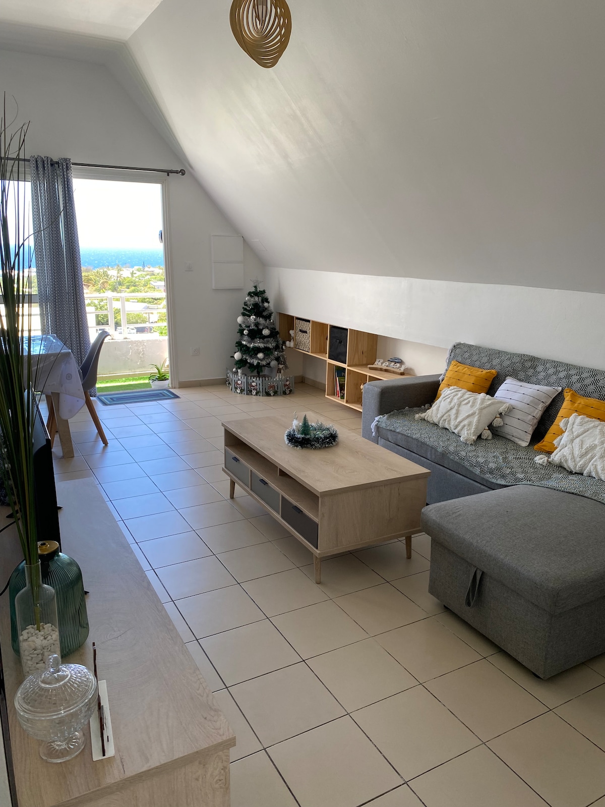 Bine ai venit la Bleu des Tropiques - MORINGA Cazare de 120 m² la etaj, cu terasă foarte mare (50 m²) cu vedere la ocean și munte, pentru 4 până la 6 persoane. Situat în zona Terre Sainte, aproape de mare (5 minute de mers pe jos), restaurante și magazine. Un dormitor matrimonial cu pat matrimonial și baie, un dormitor cu 2 paturi single, o canapea extensibilă (160), o bucătărie complet utilată, TV, Wi-Fi, baie. Cazare foarte confortabilă, parcare sigură și gratuită și piscină cu vedere la mare.
