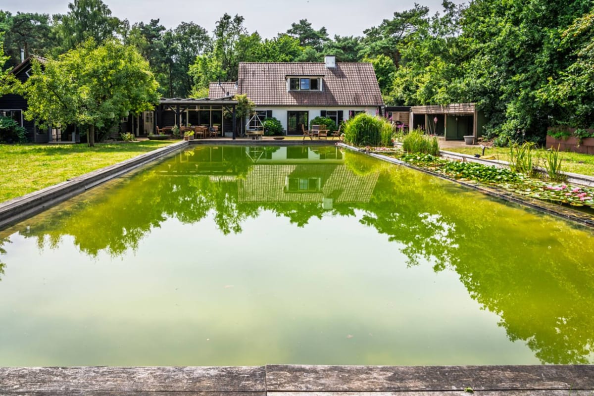 Wellness de lux la marginea pădurii din Veluwe. Casă de oaspeți unică pentru două persoane, cu utilizare privată exclusivă a piscinei interioare, a dușurilor, a băii proprii și a saunei (finlandeze). Intrare privată și bucătărie complet utilată în grădina parc. Nu sunt permise animalele! Clădirea este în mare parte din sticlă (parțial oglindită) și nu are perdele. La distanță de bicicletă de Hoge Veluwe, gara Apeldoorn și Palatul Loo. Locație ideală pentru ciclism montan, alergare și ciclism.