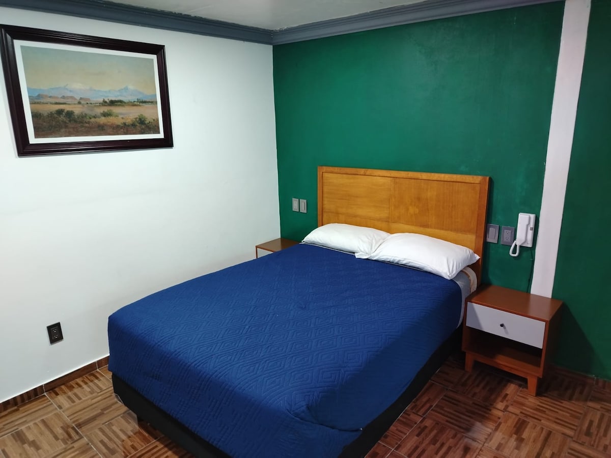 Cameră separată frumoasă și practică, cu un pat de o persoană, TV, cafetieră, masă de lucru și baie exclusivă, apă caldă toată ziua, Wi-Fi de mare viteză, camere cu circuit închis pentru securitate, la câțiva pași de Universitatea din Chapingo.