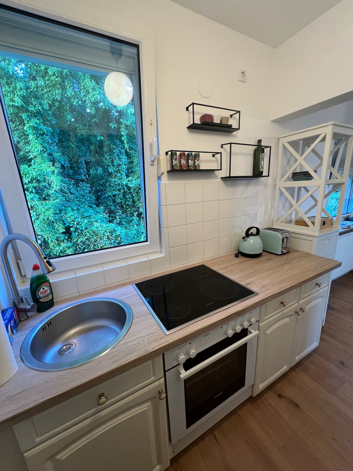 Apartament panoramic de 60 m² – pentru până la 4 oaspeți • Pat matrimonial, canapea extensibilă, pat pliant (la cerere), pătuț pentru copii • Bucătărie complet utilată: aragaz, cuptor, ceainic, aparat de cafea, mașină de spălat vase, frigider, TV • Lenjerie de pat, prosoape, cafea și ceai de înaltă calitate • Terasă mare cu șezlong, vedere la natură Locație excelentă: • 5 min cu mașina / 30 min de mers pe jos până în centrul orașului Idstein • Traseele de drumeții încep de la ușă • 20 de minute până la Aeroportul Frankfurt și Wiesbaden • 2 km până la autostradă • Loc de joacă în apropiere și restaurant cu grătar de top