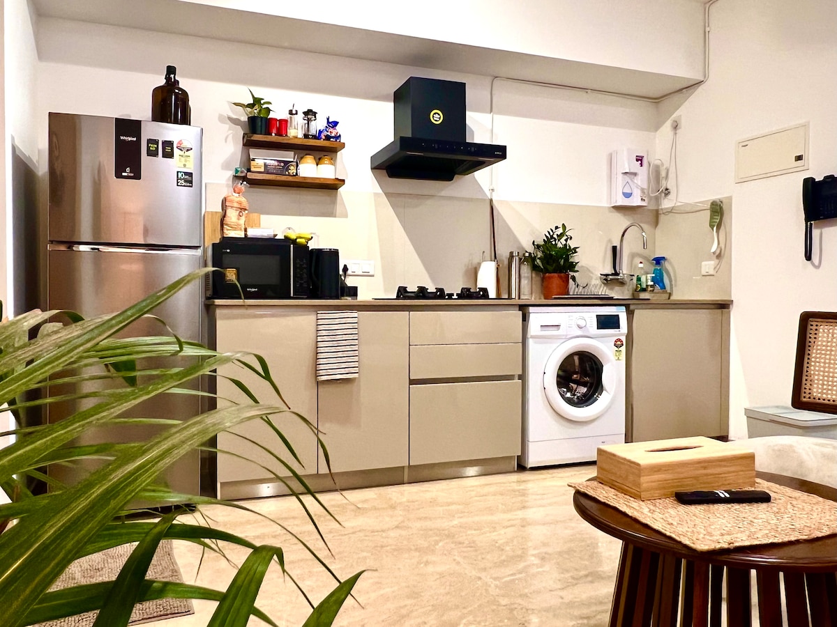 Bine ai venit la PeakView Studio by OasesHomes – o ședere confortabilă, prietenoasă cu bugetul, în Hiranandani Estate, Thane. Bucură-te de un pat confortabil, Smart TV, Wi-Fi, o bucătărie complet utilată, mașină de spălat și menaj zilnic. Apartamentul include articole de toaletă de marcă, lenjerie de pat proaspătă și securitate non-stop. Situat aproape de cafenele, clinici și „The Walk”, este perfect pentru călătorii scurte, șederi de afaceri sau refugii liniștite.
