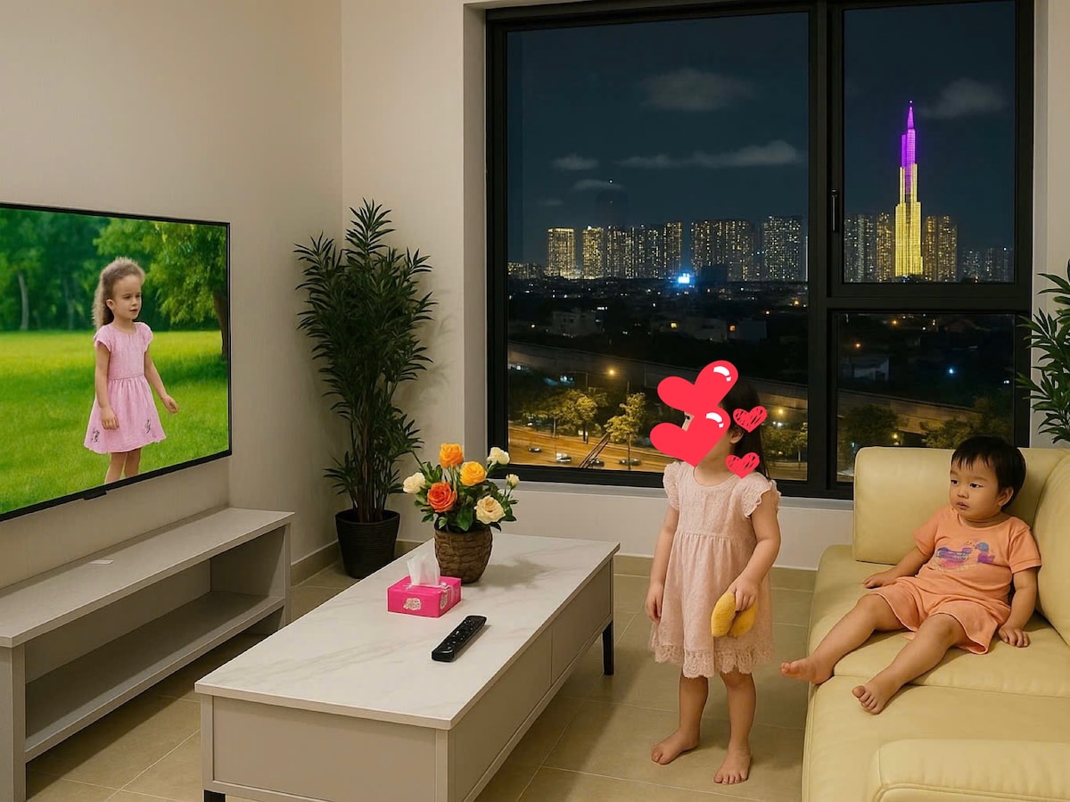 Observă și simte orașul în sine. Cea mai bună priveliște, inclusiv 2 clădiri emblematice din Saigon (Bitexco Tower & Landmark 81). - Vedere panoramică a orașului - Prinde focuri de artificii și apusuri de soare mutiples - Pian inclus, TV de 75 inch pentru filme și sport - Bucătărie complet funcțională, cu Nam An Market mai jos, perfectă pentru grupuri sau cupluri care gătesc nopți. - Loc de muncă excelent ziua și noaptea - Acces la piscină (etajul G) și sală de gimnastică (al doilea F) - 5 minute până la Districtul 1 (Centrul orașului) - 5 minute până la zona Thao Dien