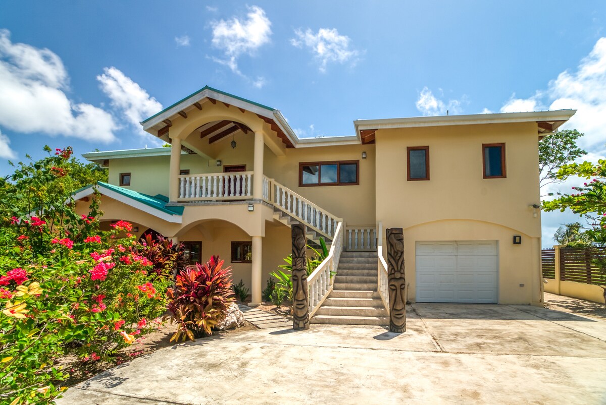 Luxury beachfront home with a gorgeous white sandy beach! The house has 2 beautiful air conditioned units included together, ideal for those traveling with another couple, teenagers, extended family, or anyone that would benefit from a little extra privacy. Perfect location in an exclusive neighborhood close to downtown. Also includes a FREE GOLF CART with refundable security deposit. We are Gold Standard Certified.