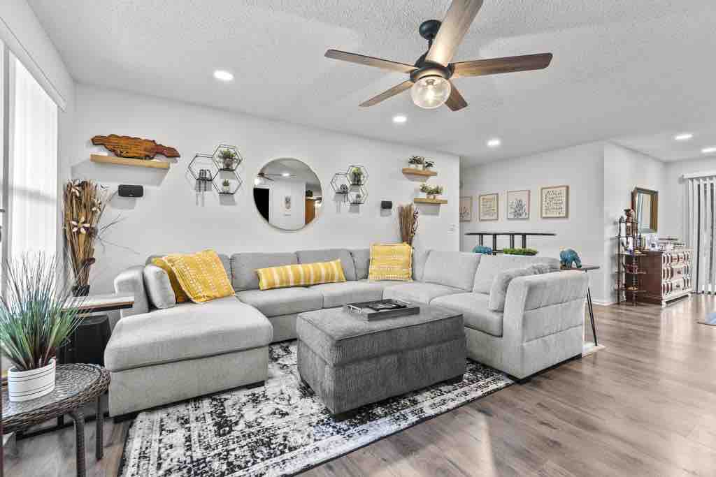Experimentează amestecul perfect de lux și tehnologie în această casă uimitoare cu 4 paturi, 3 băi plus (cu o canapea extensibilă Queen), dormind 10 persoane, pe un teren împrejmuit cu 1,15 acri. Bucură-te de un plan cu etaj divizat, caracteristici ale locuinței inteligente, piscină încălzită, cadă cu hidromasaj cu cascadă cu LED-uri, vatră, cameră ecranată în Florida, foișor supradimensionat și iaz privat. Controlează cu ușurință luminile, piscina și spa-ul cu o telecomandă convenabilă la piscină. Retragerea ta liniștită, cu priveliști panoramice și relaxare nesfârșită,nu rata această bijuterie!