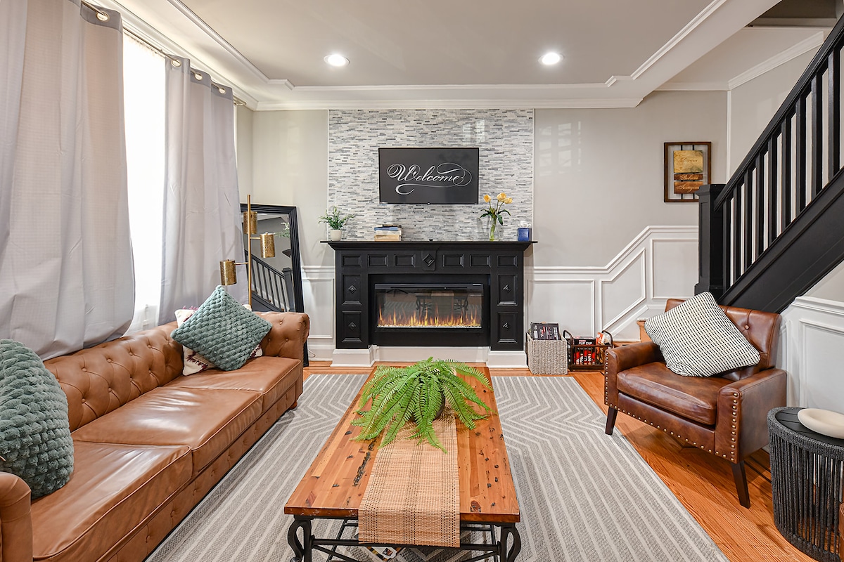 RowEnd Family Friendly w Parking Amestecul perfect de farmec urban și relaxare pe malul apei, ideal atât pentru petrecerea timpului liber, cât și pentru afaceri. Pat interior Q original din cărămidă Master BR, zonă de lucru. 2 BR extensibil K pat de zi, șemineu, TV 85", canapea extensibilă. Duș cu pulverizator de corp, combinație de spălare+uscător. Wi-Fi, televizoare inteligente. Ieși afară, cufundat în energia vibrantă Fells Point, cunoscută pentru străzile pietruite, buticurile locale cu arhitectură istorică, barurile și restaurantele pline de viață, totul este la 1 stradă de apă
