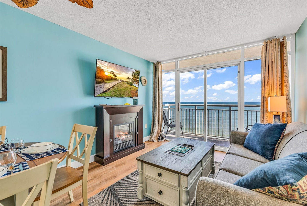 We are excited to say: the beaches, pools, and restaurants are now open! This condo is professionally cleaned!! Key Features of this condo include: * Oceanfront One Bedroom at Sandy Beach Resort * 1 King Bed, with Sofa Bed, Sleeps up to 4, sheets provided * Private Bathroom * Fully Equipped Kitchen, with Kitchen Table * High-speed FREE Wi-Fi * FREE Parking * Indoor and Outdoor Pools, Lazy Rivers and Hot Tubs * Short walk to 2nd Avenue Pier and Family Kingdom Amusement Park