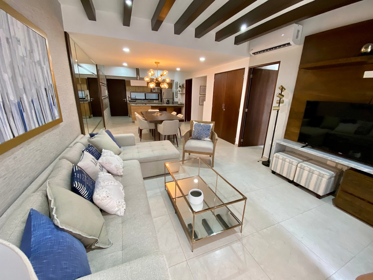 Bucură-te de acest apartament modern din Mazatlán, cu vedere uluitoare la ocean de la Cerro de la Nevería. Ideal pentru o escapadă de neuitat, acesta are o terasă privată mare, o piscină comună și se află la doar câțiva pași de plajă și de Malecón. Un refugiu elegant și perfect echipat pentru confortul tău.