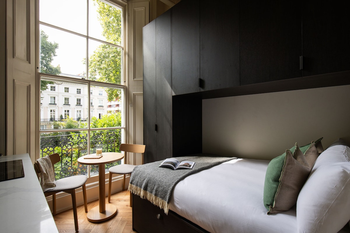 Experimentează luxul în studioul nostru frumos renovat, în cea mai râvnită adresă din Chelsea. Scufundă-te în patul nostru dublu premium cu lenjerie de pat de calitate hotelieră după ce explorezi buticurile King's Road din apropiere și muzeele de clasă mondială. Bucătăria elegantă și baia modernă oferă tot confortul de acasă, cu un plus de eleganță. La doar câteva minute de stația Sloane Square, te vei bucura de amestecul perfect de viață sofisticat și acces convenabil la cele mai frumoase atracții din Londra. Retragerea ta elegantă din Chelsea te așteaptă.