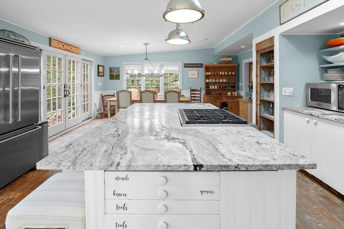 Recent renovată și prezentată ca un Airbnb de top de către revista New York, The Beach Cottage a fost proiectată și decorată într-un stil organic modern, cu o paletă de albi și neutri pentru a crea o evadare liniștită și liniștită. Relaxează-te în livingul aerisit, luminos și deschis, care are un perete de sticlă pentru living interior/exterior cu vedere expansivă la apă. Stai la proprietate pentru înot, plimbări pe plajă, apusuri de soare și grătare - sau aventurează-te să te bucuri de tot ce are de oferit North Fork.