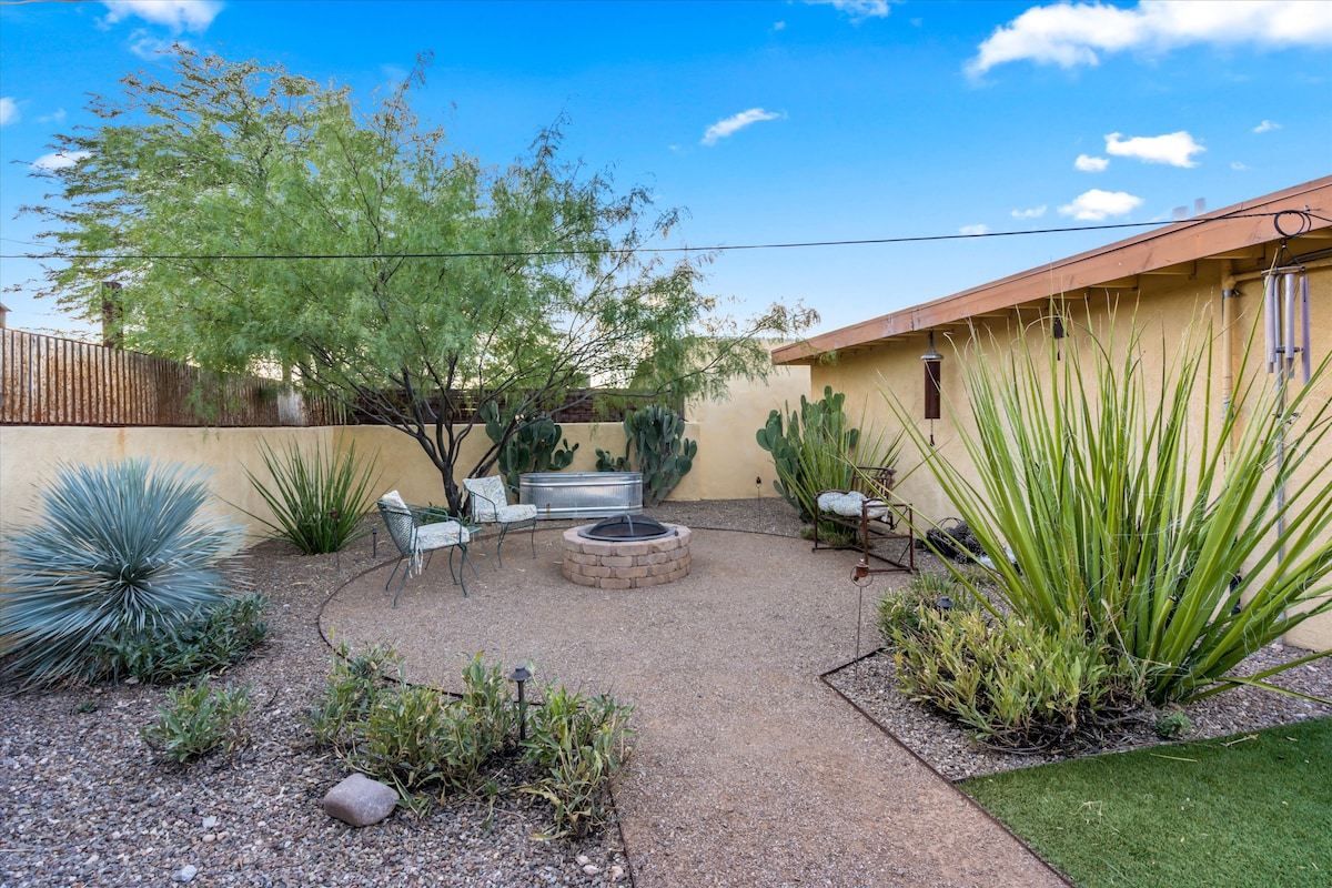 O casă liniștită și confortabilă în cartierul istoric Blenman-Elm. Situat în inima orașului Tucson. La câțiva pași de Universitatea din Arizona, Banner - Centrul Medical Universitar, troleibuzul Tucson, magazine și restaurante. Înconjoară-te de natură într-o grădină privată de meditație, cu zonă de relaxare amplă, o groapă de foc și opere de artă metalice personalizate. Vei avea propria alee privată și intrare. Petrecerile, evenimentele sau adunările cu mai mult de 4 persoane nu sunt permise. Ore de liniște după 22:00.