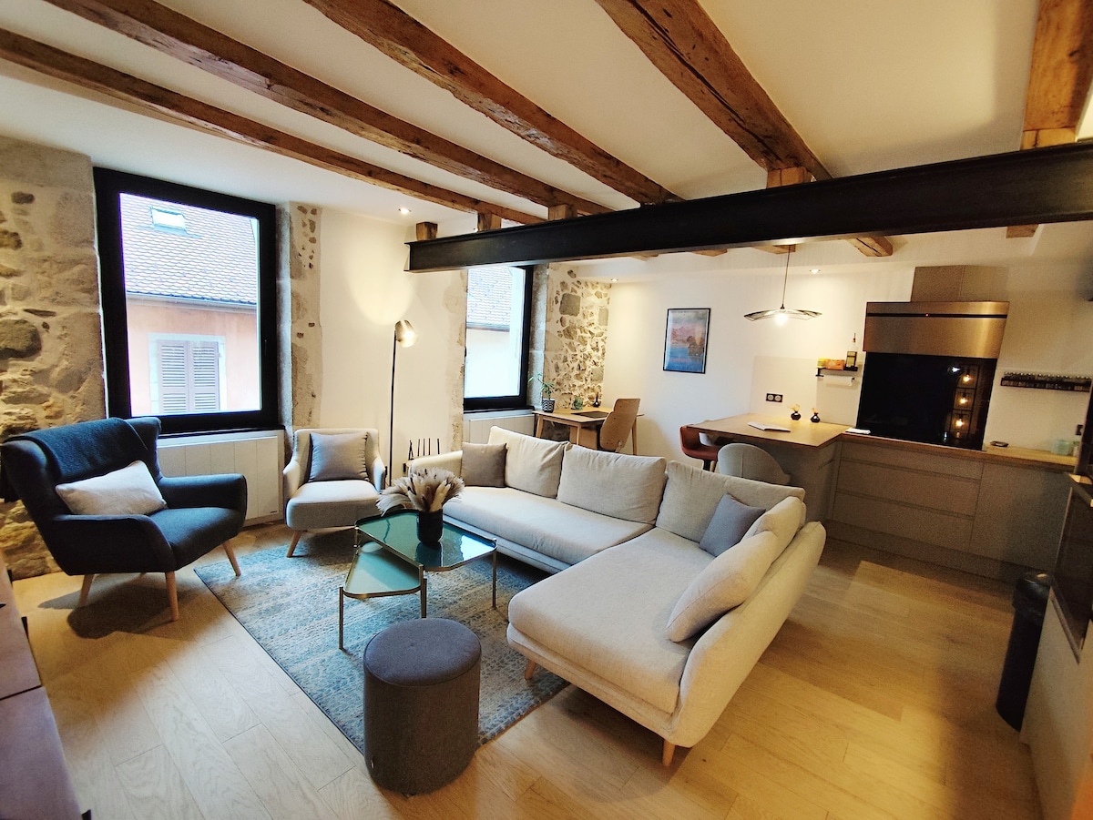 Cazează-te într-un cadru de eleganță și confort în inima orașului vechi Annecy. Amplasat la etajul 2, acest apartament cu farmec atemporal și design rafinat combină modernitatea și liniștea. Fiecare detaliu a fost conceput pentru a oferi o experiență de neuitat, ideală pentru momente de împărtășire cu familia sau prietenii Situat ideal pe străzile pietonale, la doar 5 minute de lac, vei fi cufundat într-o atmosferă unică, unde stilul și bunăstarea se întâlnesc pentru a-ți îmbunătăți șederea.