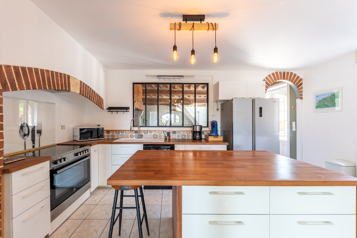Aproape de mare și în inima peisajului rural din Normandia, am plăcerea de a te întâmpina în casa mea de 400 m², complet restaurată, astfel încât să-și poată recâștiga autenticitatea și farmecul în parcul său de 2 hectare (5000 m² util ). Această fermă tipică este situată în incinta sa, cu caii săi (sezonul următor) și înconjurată de câmpuri. Modernitatea și autenticitatea sunt cuvintele cheie ale casei noastre.