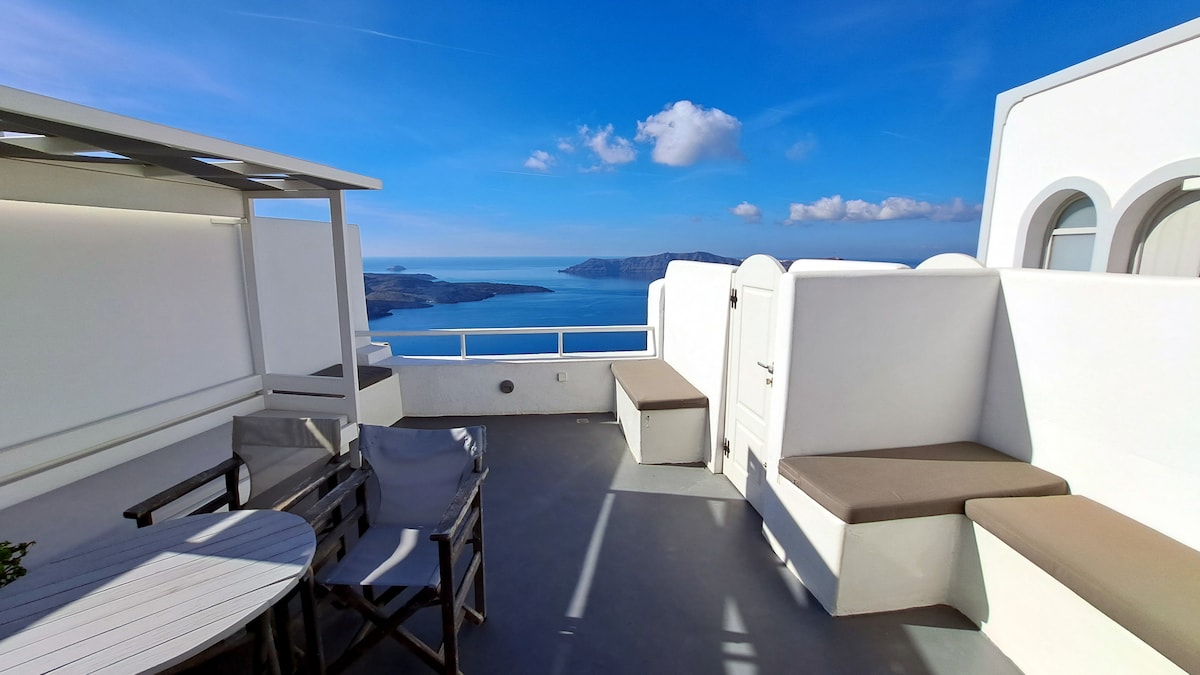 Vila „Yposkafo” îmbină frumos tradiția, eleganța și confortul, oferind un sejur de neuitat într-una dintre cele mai uimitoare locații ale insulei. Cocoțat pe Caldera, la doar câțiva pași de emblematicul „Trei clopote din Fira” și la doar 7-8 minute de mers pe jos de oraș. Are o mini piscină de lux, jacuzzi interior, un pat matrimonial, un pat matrimonial, 4 canapele/paturi și o terasă privată spațioasă cu vedere panoramică la Marea Egee, faimosul apus de soare Santorini și vulcan.