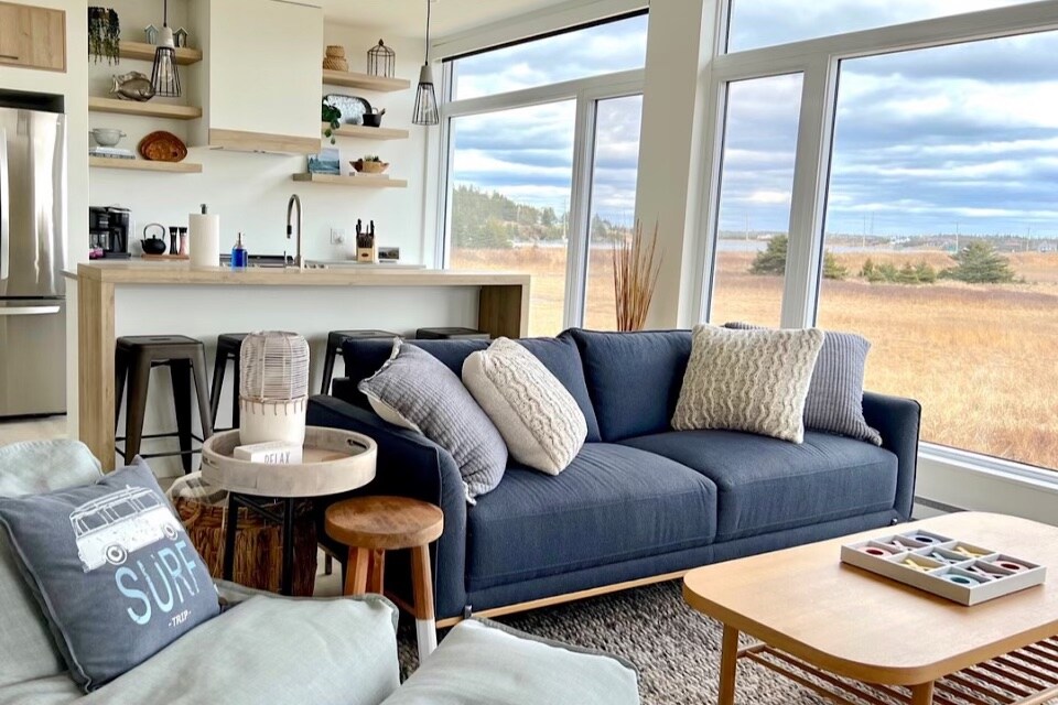 Această locuință tematică de coastă este situată la capătul unei benzi private de pe un estuar care decurge din ocean. O scurtă plimbare până la una dintre cele mai frumoase plaje din Nova Scotia. (Plaja lui Conrad) Urmărește stelele de pe veranda acoperită, camera de zi închisă sau cada cu hidromasaj fierbinte și modernă. Te vei îndrăgosti de sunetele păsărilor marine care se zbat în apă direct la o aruncătură de pietre din orice locație a locuinței. Apusurile de soare sunt spectaculoase!