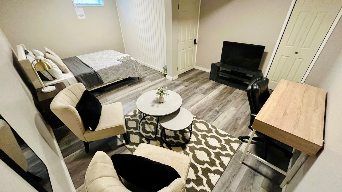 Bay Nest – Private Basement Suite ✅ Private basement suite with Queen bed + extra twin bed ✅ Private kitchen & washroom ✅ Keypad check-in ✅ Free parking (extra vehicles must be notified) ✅ Spacious room with study table ✅ HD TV, Wi-Fi & Netflix ✅ Free laundry, RO water & 24×7 outdoor camera monitoring ✅ 7 mins to airport ✅ Bus stop at the door ✅ 3 mins to Expressway, Hogarth Riverview Manor ✅ 5 mins to hospital ✅ 2 mins to Confederation College, No Frills, Shoppers & Tim Hortons