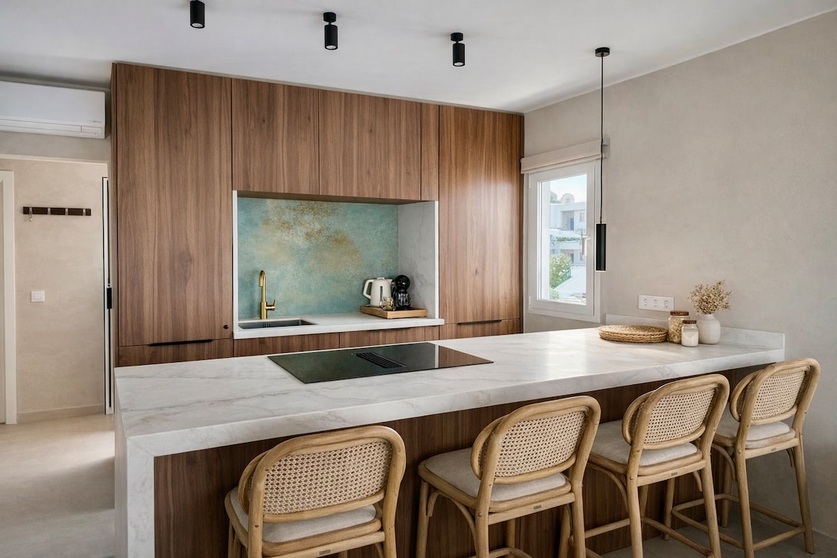 Vilă și apartament de lux exclusivist, cu piscină privată, design elegant și contemporan și spații spațioase inundate cu lumină naturală. Vila poate găzdui până la 6 persoane și include un apartament privat cu baie, ideal pentru încă 2 persoane. Are mobilier nou de înaltă calitate și camere atent concepute pentru a oferi confort maxim. Un cadru exclusivist, ideal pentru relaxare și pentru a te bucura de o experiență unică de vacanță, la doar 500 de metri de plajă.