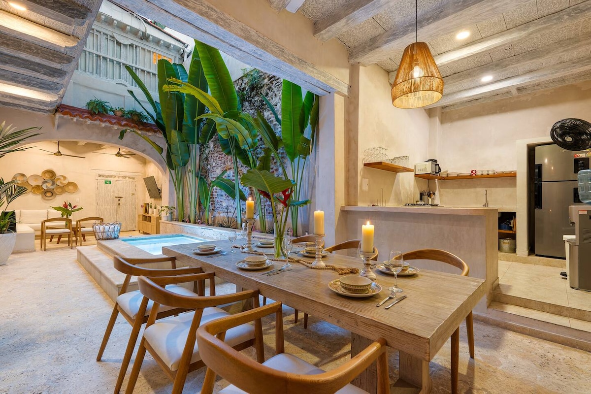 Vilă colonială de lux în Getsemaní cu personal non-stop pentru curățarea zilnică a camerei și securitate. Această locuință emblematică cu 6 dormitoare are o piscină privată, terasă pe acoperiș și mic dejun zilnic. Situat la câțiva pași de Café Havana, îmbină arhitectura veche de 200 de ani cu designul modern pentru o ședere de neuitat în Cartagena. Recunoscută de Airbnb pentru că are una dintre cele mai bune piscine din lume și prezentată în publicații internaționale de arhitectură și stil de viață.