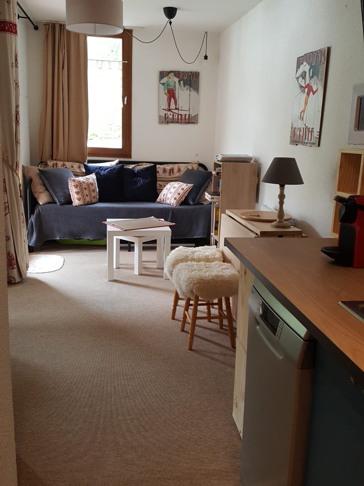 Apartament frumos de 30 m² care poate găzdui 5 persoane. Bucătărie deschisă, living cu zonă de luat masa, un dormitor, două zone de dormit, baie, toaletă separată. Apartamentul beneficiază de un balcon mare orientat spre sud-vest, cu priveliști minunate. Situat la etajul 2 cu lift, în inima stațiunii, plecare și schi de întoarcere. Fumatul nu este permis în unitate. Dulap de schi. Parcare inclusă.(înălțime maximă 1m90) Curățenie inclusă. Închirierea lenjeriei este posibilă 20 €/pers (lenjerie de pat, prosop, covoraș de baie)