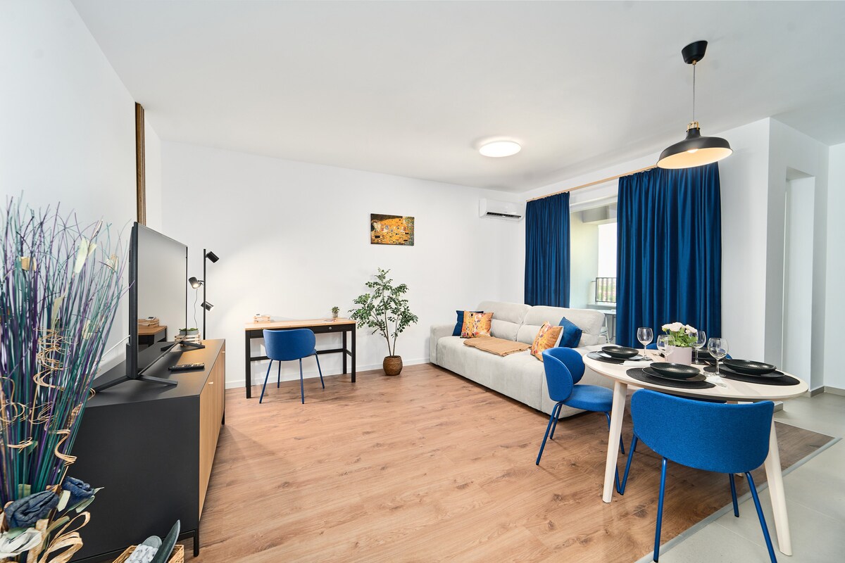🌐Te invit să explorezi un spațiu în care fiecare detaliu contează! • Bucătărie: Plită, cuptor, frigider, mașină de spălat vase, toaster și accesorii de gătit. • Living: WiFi rapid, TV și canapea extensibilă. • Dormitor: Lenjerii premium, depozitare și birou. • Baie: Duș, bideu, produse esențiale și prosoape. • Facilități: Aer condiționat, mașină de spălat cu uscător inclus și fier de călcat. • Parcare Gratuită. 🔑 Rezervă acum și bucură-te de un sejur memorabil!