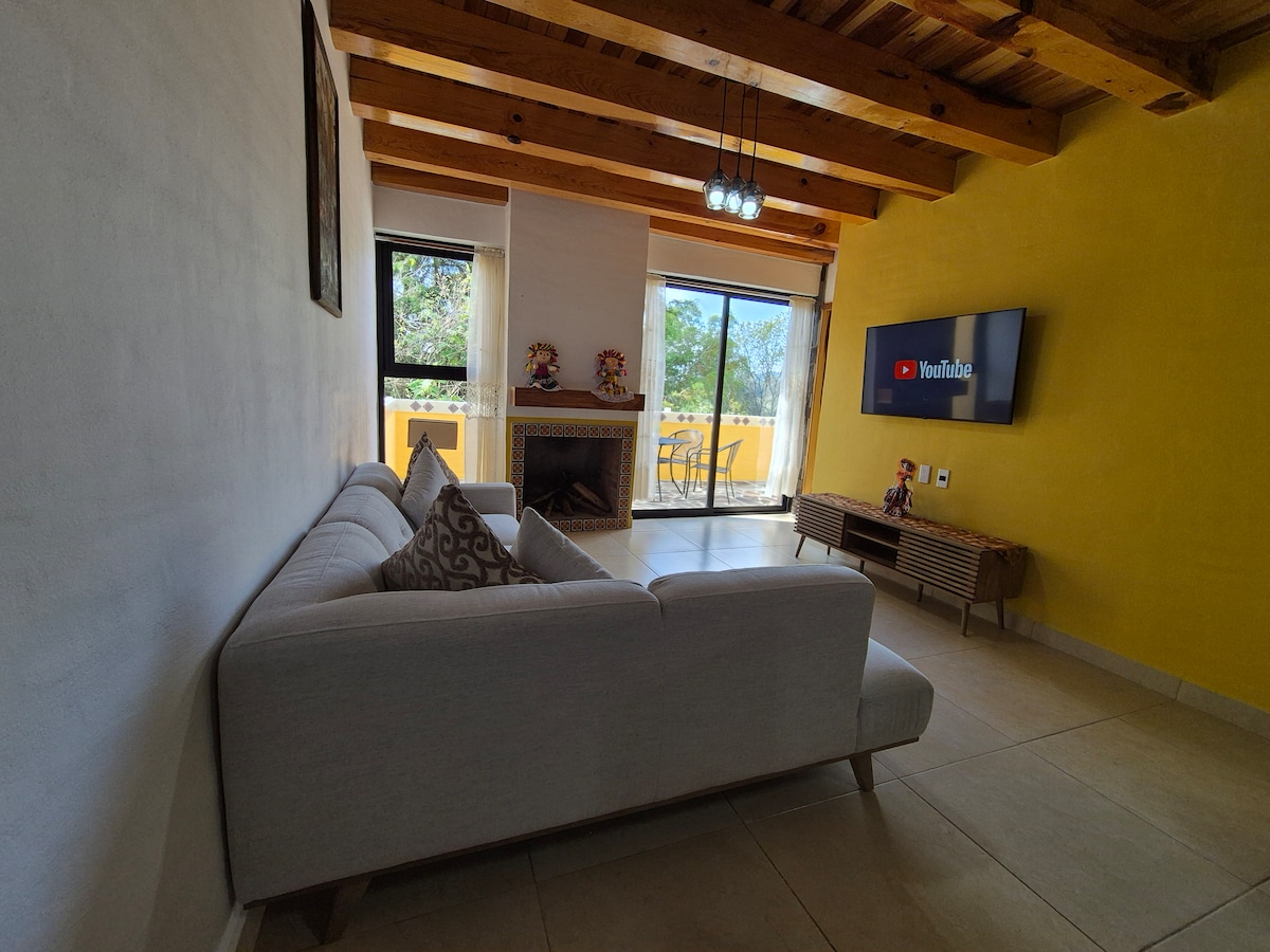 Disfruta de un día de sauna, jacuzzi de hidromasaje con agua caliente y ver una peli desde un proyector 4K. Todo privado y exclusivo para tu estadía. A solo 10 minutos del centro de Mazamitla en zona boscosa🍃
