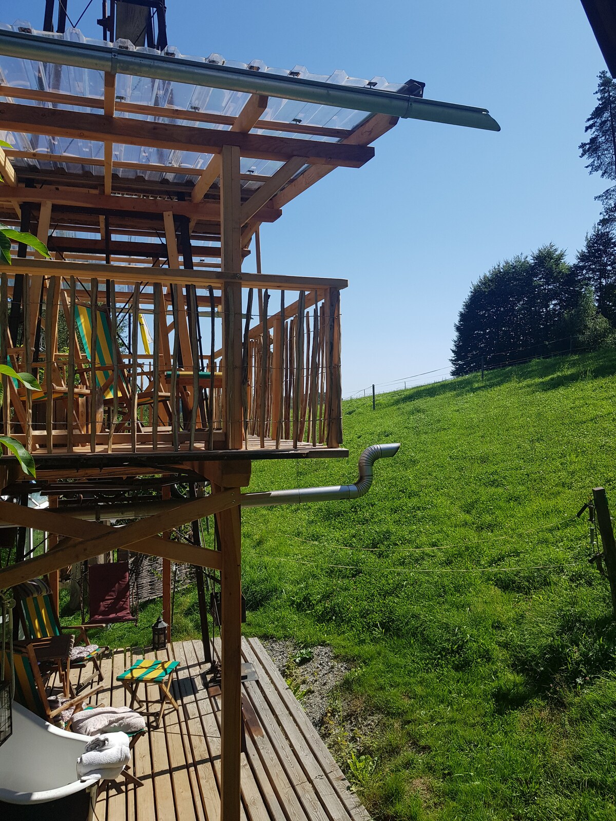 Apartament foarte luminos, nou, cu 2 camere, cu acces direct la terasa spațioasă din grădină, cu grătar cu gaz WEBER, pentru utilizare gratuită și utilizare privată. Privește Flanitzbach spre grădinile de sticlă Frauenau. La 5 minute de gară. Bucătărie cu următoarele dotări: frigider, aragaz, chiuvetă, vase etc. Aragaz suedez în dormitor. Locație foarte liniștită și idilică. Miere de la propriile albine și apă de pădure gratuită. Baie nouă privată cu duș și toaletă în pădurea tropicală Wi-Fi este disponibil.