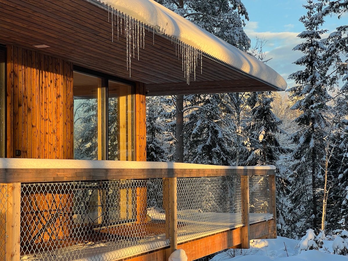 Welcome to our architect-designed house with sauna, fireplace and beautiful views of the lake and ski slopes. Perfect for a winter stay in Järvsö, with skiing, cross-country trails and nature close by. In summer, the house is just as special, with a private jetty, rowing boat and hiking and cycling trails nearby. A peaceful and secluded place to truly relax. Three bedrooms, fully equipped kitchen, terrace and free EV charging. Featured in Sweden’s leading newspapers as one of the top Airbnbs.