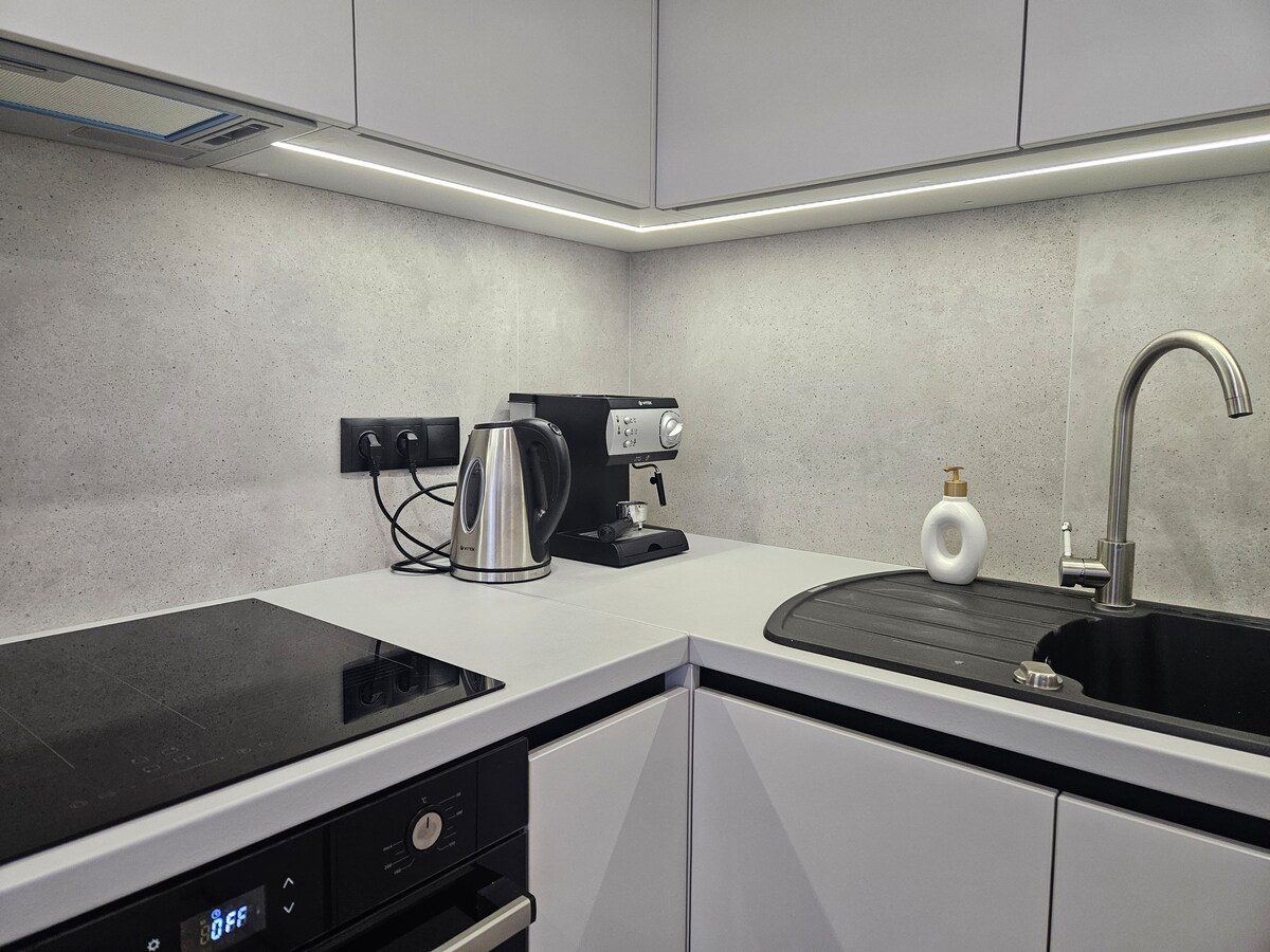 Relaxează-te într-un apartament elegant în inima Chișinăului, cu finisaje din marmură și lemn natural. Te vei bucura de o saltea premium Vi-Spring Bedstead, o cadă spațioasă și un balcon cu șemineu decorativ. Apartamentul are perdele cu telecomandă și espressor cu cafea pe boabe Blocul beneficiază de recepție și pază 24/24, oferindu-ți un plus de siguranță, confort și liniște pe durata întregii șederi.