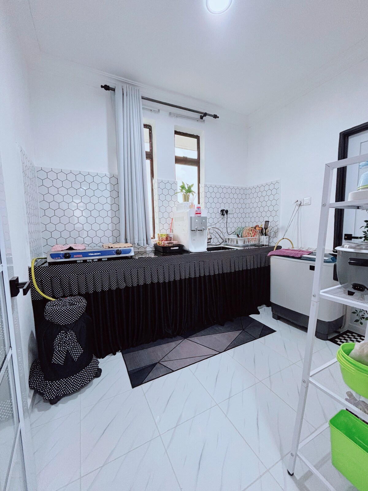 ▪️Locație în apropiere de Melor Market 🔹Bungalow landed house 1 level ▪️Acces facil de la drumul principal 🔹4 dormitoare cu pat matrimonial și aer condiționat în toate camerele ▪️3 toalete (2 toalete au încălzitoare de apă) 🔹️Wi-Fi gratuit ▪️Android TV (Youtube, Netflix) 🔹Living ▪️Cameră TV 🔹Bucătărie Loc de ▪️parcare încape 5 mașini și o curte spațioasă a casei 🔹 Maximum 15 oaspeți ???? 📍Piața Melor - 8 minute 📍Ketereh/Kok Lanas - 15 minute 📍UMK Bachok - 20 de minute 📍Pasir Tumboh - 20 de minute 📍Wakaf Che Yeh - 25 de minute