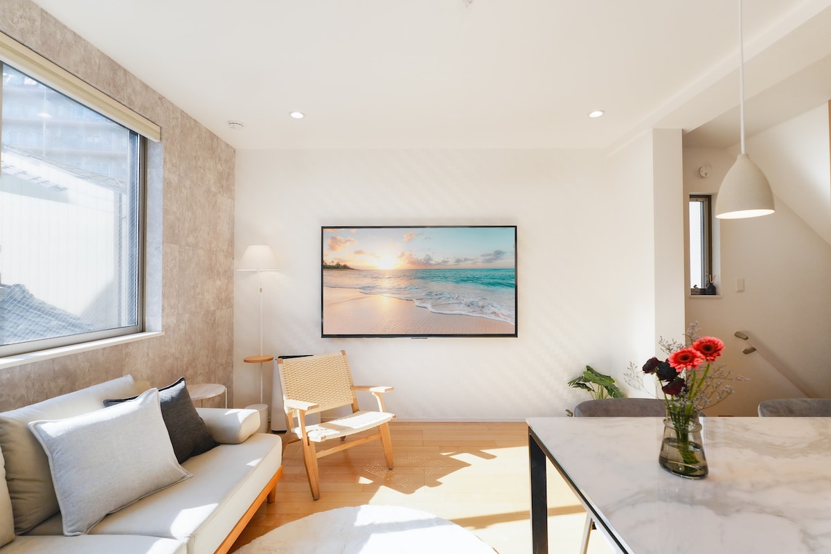 Bun-venit în casa mea privată, nou construită, de lângă Skytree. 4 minute de mers pe jos până la Tokyo Skytree și până la gară. Acces direct cu trenul la aeroporturile Narita și Haneda. Bucură-te de o casă privată cu 3 etaje, cu vedere la Skytree de pe acoperiș. Locuință spațioasă cu 3 dormitoare, 1 pat matrimonial „Queen” (160 cm lățime), 2 toalete, 📍 Poziție excelentă • 4 minute de mers pe jos până la gară și Tokyo Skytree • 13 minute de mers pe jos până la Asakusa 🛍 Zonă convenabilă • Supermarket și restaurante în apropiere 🛋 Dotări • Televizor de 50 de inchi (Netflix) • Mașină de spălat cu tambur, cu uscător