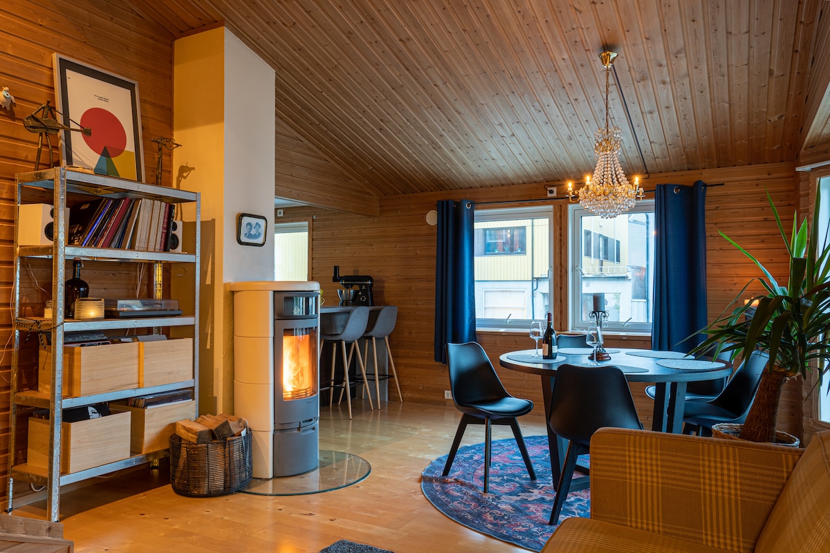 Bine ați venit în casa mea confortabilă, proiectată de arhitecți, în inima orașului! Veți fi aproape de toate cele mai bune magazine, restaurante și activități. Relaxați-vă și bucurați-vă de atmosfera liniștită și inspiratoare a casei mele în stil norvegian. Bucurați-vă de o baie în cadă, de un pahar de vin pe terasă sau urmăriți dansul luminilor nordice deasupra capului de la masa de cină. Cel mai important dintre toate. Și asta vine din inimă: Simțiți-vă ca acasă!